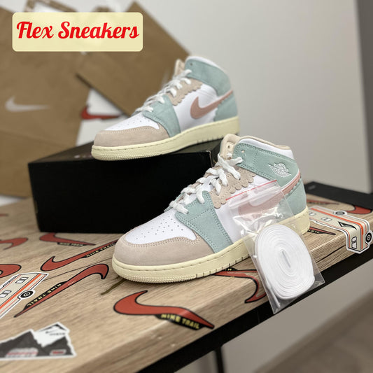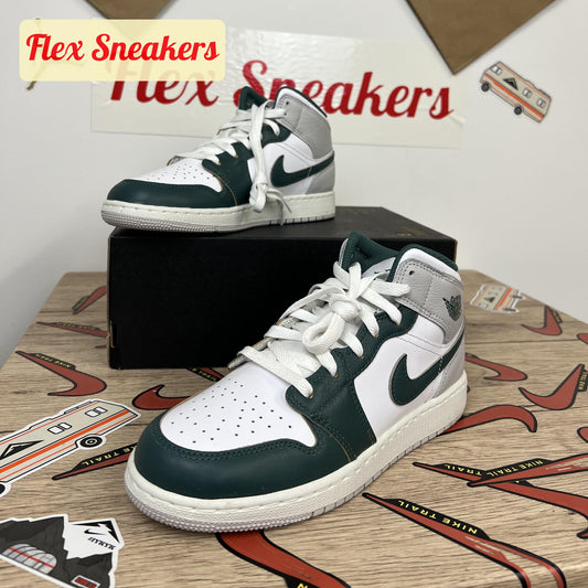 Air Jordan 1 Mid SE (GS) White/Green-Sail